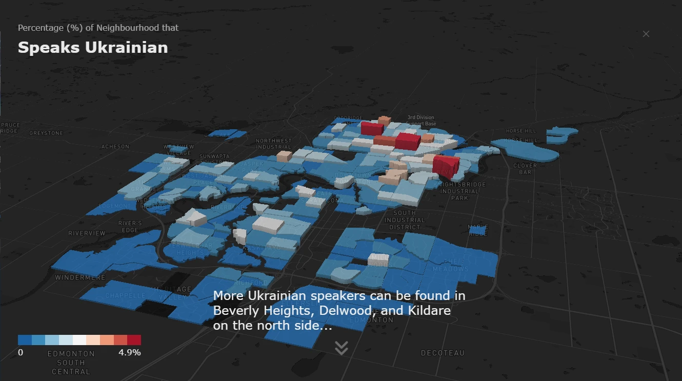 We came up with “This is Edmonton” as a way to both increase engagement and make the insights accessible. The insights are initially introduced to users through storytelling and 3D mapping…