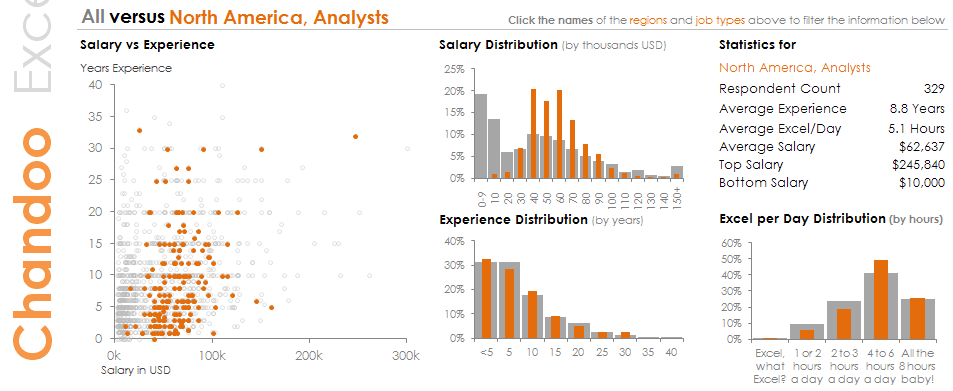 Last week I received an email from Bernard Lebelle, who is apparently updating his book on dashboarding in Excel and will be including screen shots of the three winning tools from Chandoo’s Excel Salary Contest. You can download my submission here. Mr. Lebelle’s book is in French so I can’t speak to its quality, but my hope is that it will espouse good dashboard design principles that make knowledge transfer and decision making easier.