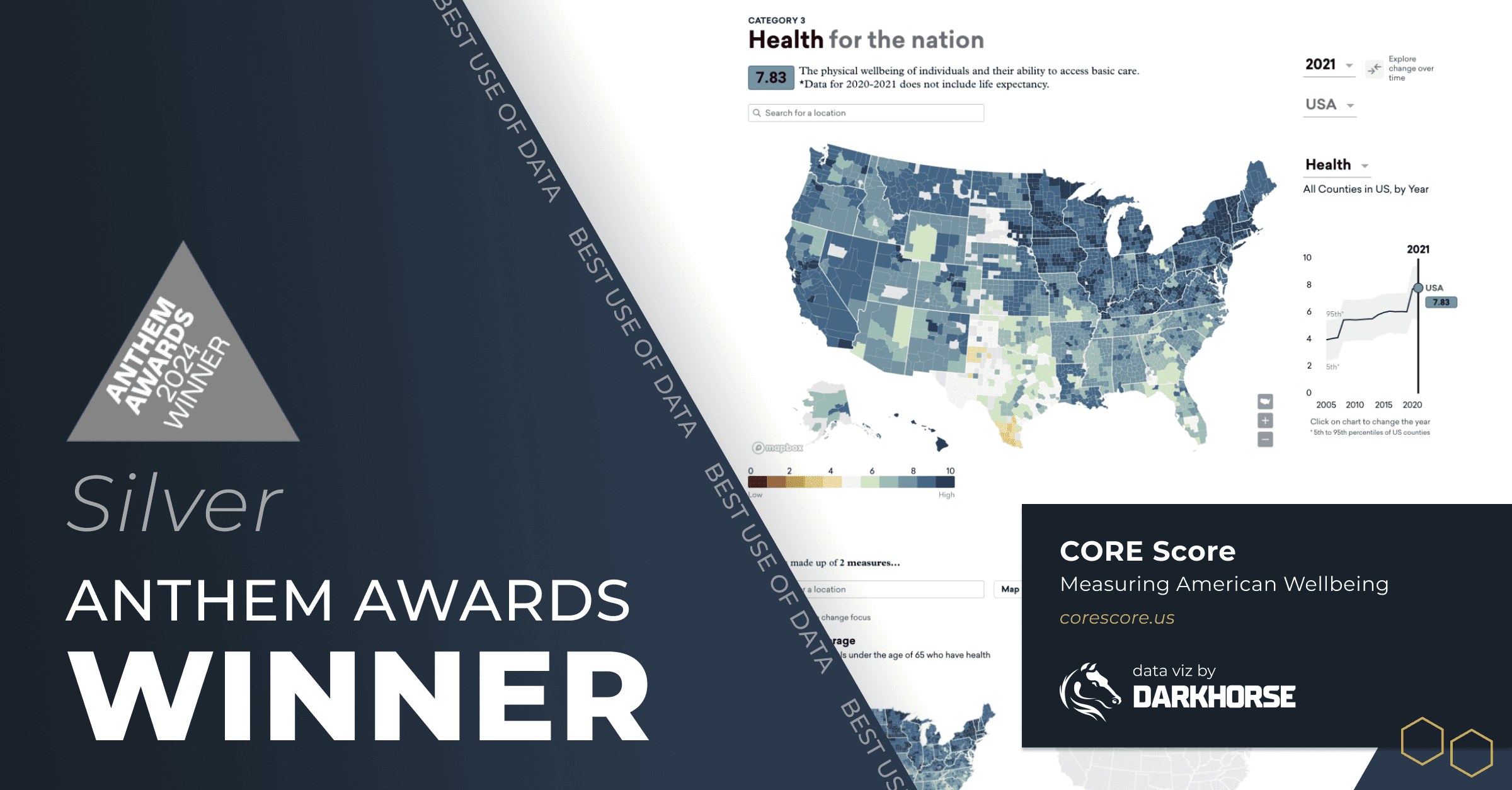 Darkhorse Analytics is proud to announce that two of our projects—CORE Score Data Visualization and AIDSVu Interactive Map & Location Profiles—have been honored with Anthem Awards. These recognitions highlight our commitment to using data to create meaningful change.