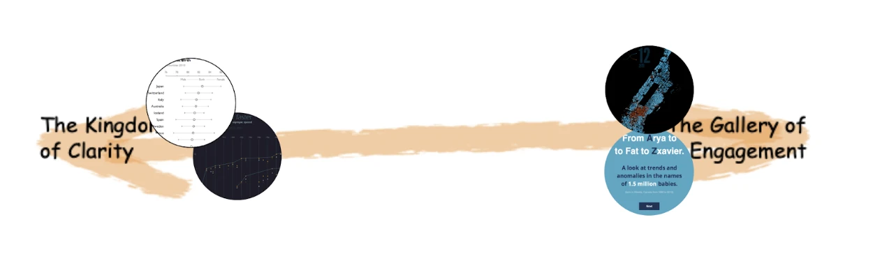 So for the Life Expectancy viz, I can make it either more clear, more engaging, or some combination of the two. For Baby Names, I could sacrifice some engagement for clarity (i.e., move it up and to the left) or the inverse.