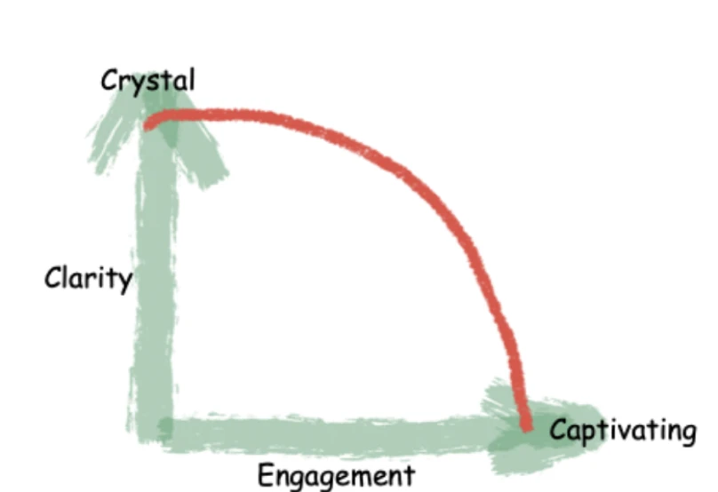 This seems like a useful way to categorize your visualizations. But it does beg the question: how do I make my visualization more clear or more engaging? How do I move up and to the right so that everything I build is on the red line?