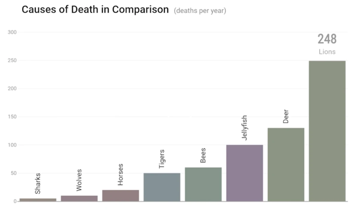 In keeping with our rather morbid theme, I present a simple, yet very effective animation of Selected Causes of Death. By applying animation to a simple bar chart, the authors have turned a boring column chart into a compelling story: