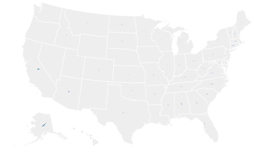 Very cool, but with so much movement it’s difficult to tell who’s coming and who’s going. We added a gradient to the paths to make dots appear blue as they leave a state and orange as they arrive.