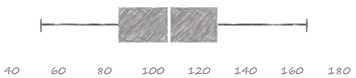 Box Plots focus on the min, 25th percentile, median, 75th percentile and max. Most will explicitly plot outliers and exclude them from the min-max. Nathan Yau has an excellent post on reading and using box plots. Even though it simplifies our distribution, it is still quite powerful, revealing skews and outliers as well as range and central tendency.