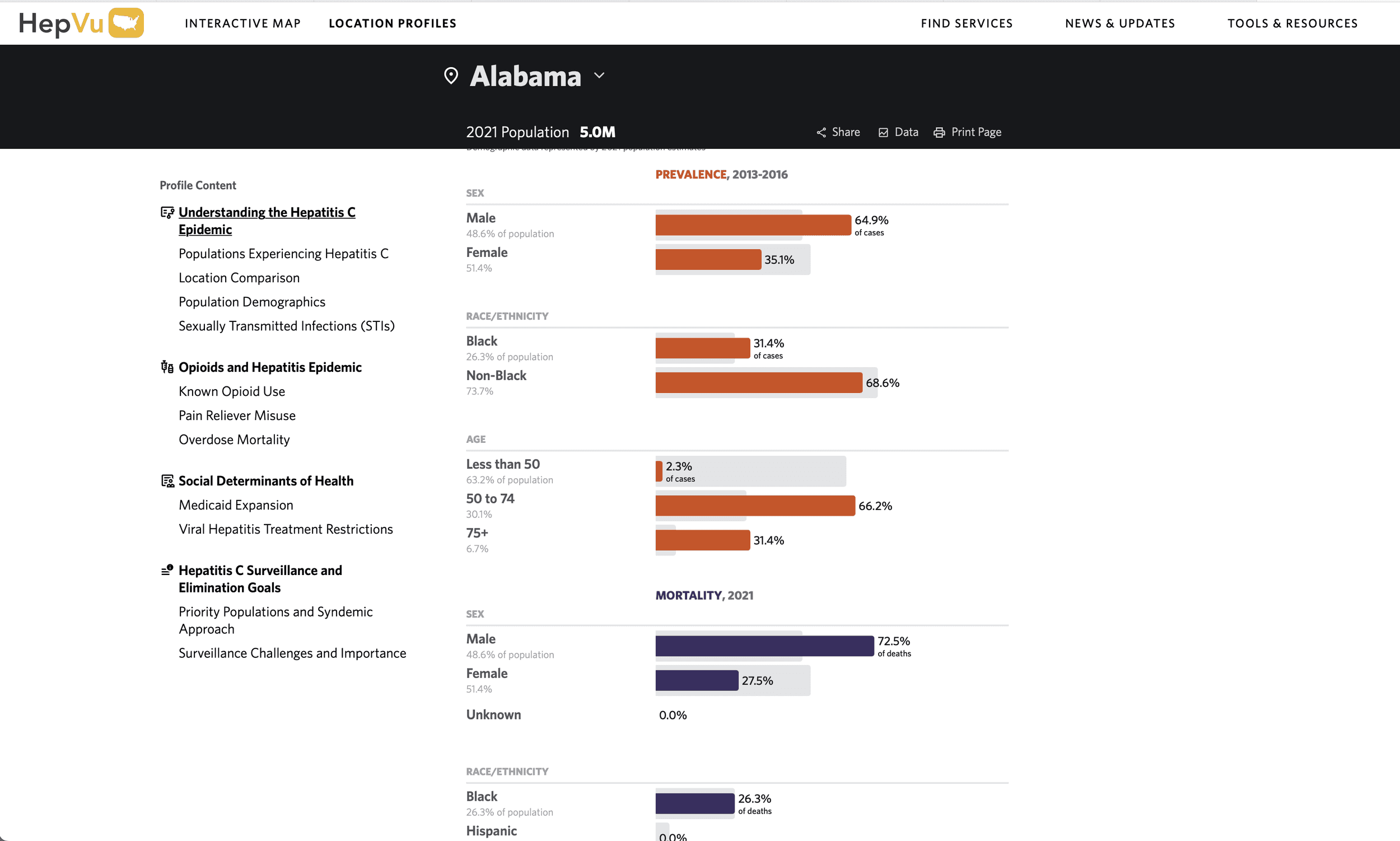 Alongside AIDSVu, Darkhorse Analytics has also launched the HepVu interactive mapping tool focused on visualizing the impact of viral hepatitis in the United States. HepVu provides similar tools and insights to support public health initiatives, using data from reliable sources to help users understand the prevalence and impact of viral hepatitis across various demographics and social factors.
