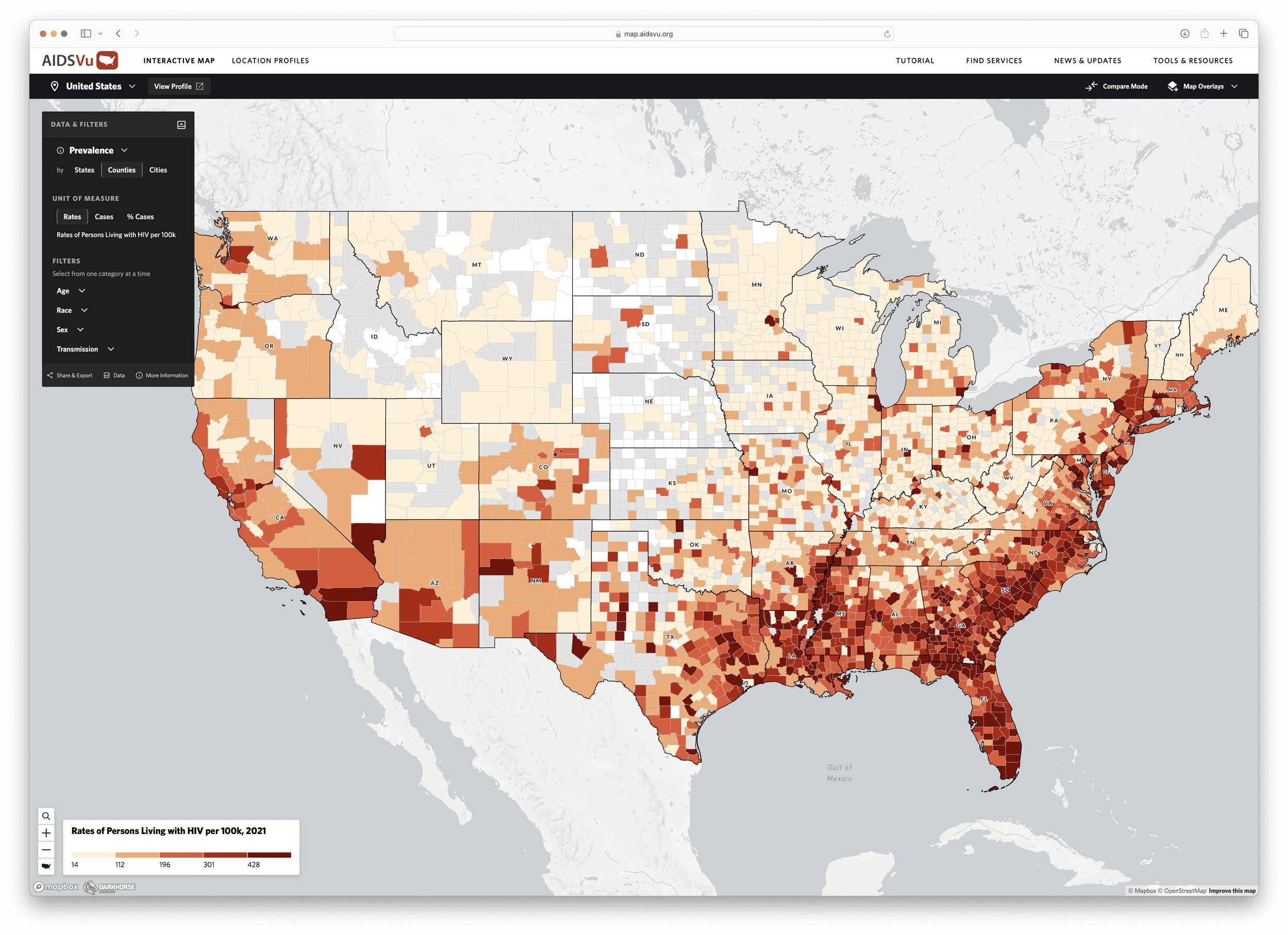 Developed in partnership with the Rollins School of Public Health at Emory University and Gilead Sciences, AIDSVu and HepVu use feature-rich interactive maps and polished location profile reports to offer an in-depth understanding of the impact of HIV and viral hepatitis across the United State