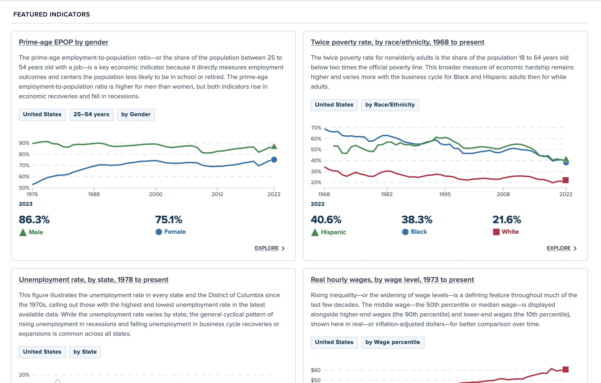 Compiled from Economic Policy Institute analysis of government data sources, it enables users to explore critical topics like wages, inequality, and other economic indicators over time and across demographic groups. Fundamentally, this library wasn't just designed to store data—it was built to empower people to tell truthful stories about the economic conditions faced by everyday working Americans.