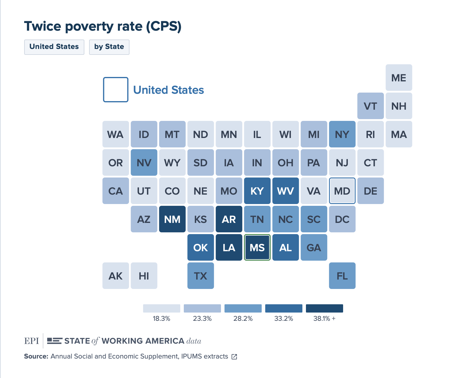 The all-new state cartogram view unlocks previously inaccessible state-level insights, offering a clear, point-in-time comparison across regions. Despite doubling the available data, the new design makes finding and exploring insights more intuitive than ever.