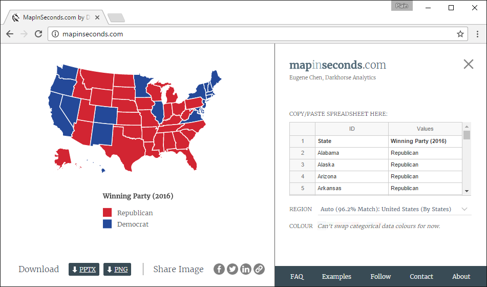 It shouldn’t take so long or be so difficult, so we built MapInSeconds.com, which takes your data and generates a map - in seconds. The tool is free, there’s no sign-up required, and you can save the map as an image or a PowerPoint slide with the click of a button.