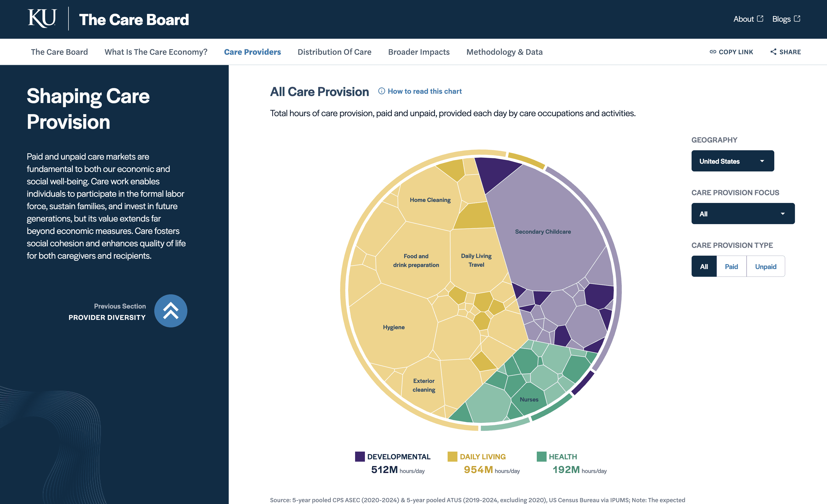 We created thecareboard.org, an interactive platform which goes beyond aggregating data to tell a story, invite exploration, and drive conversation.